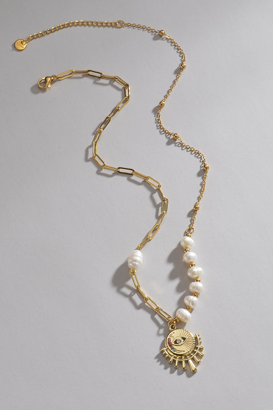 Sold outEvil Eye Pendant Pearl Stainless Steel Necklace