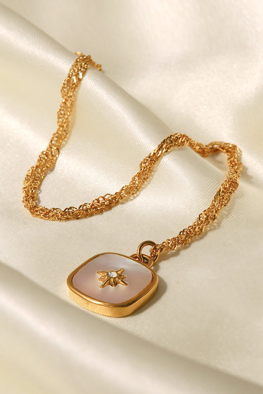 Inlaid Zircon Pendant Stainless Steel Necklace