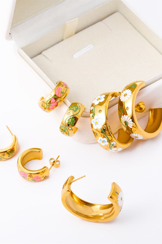 Stainless Steel 18K Gold Plated Ring Shape C-Hoop Earrings