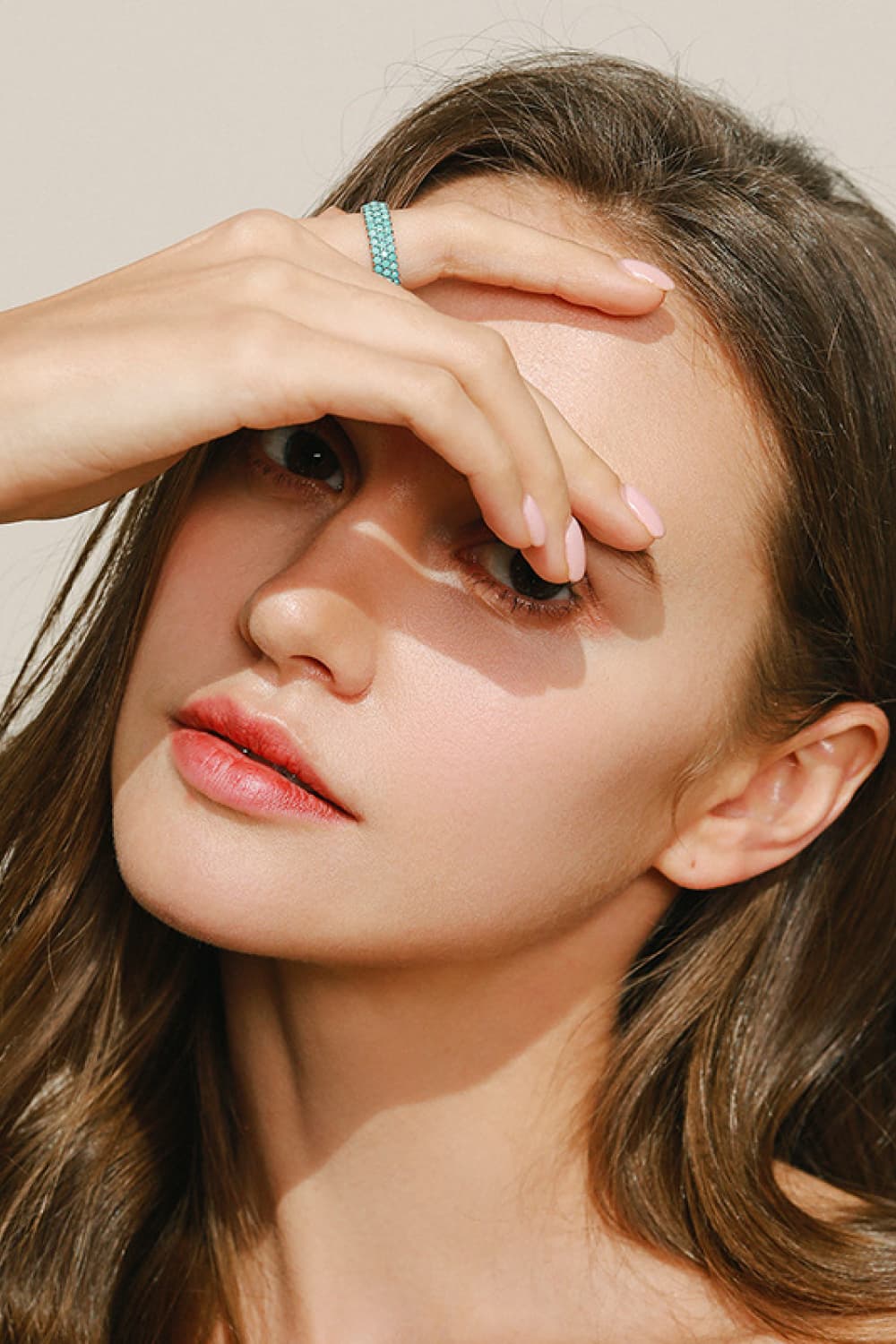 925 Sterling Silver Triple Row Artificial Turquoise Ring